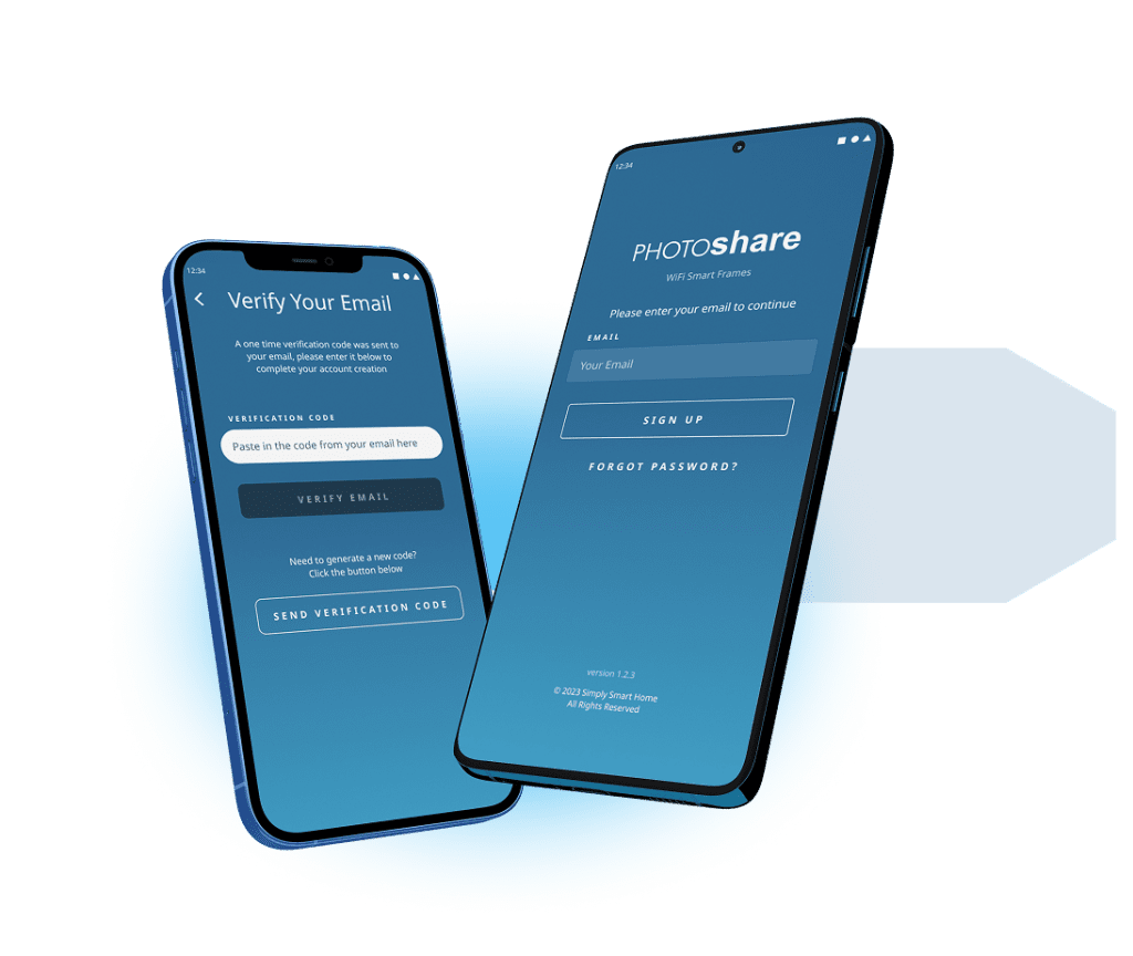Take photos directly in the app –available on the Google Play & Apple App Store. With simple navigation, you can instantly share to your smart photo frame.