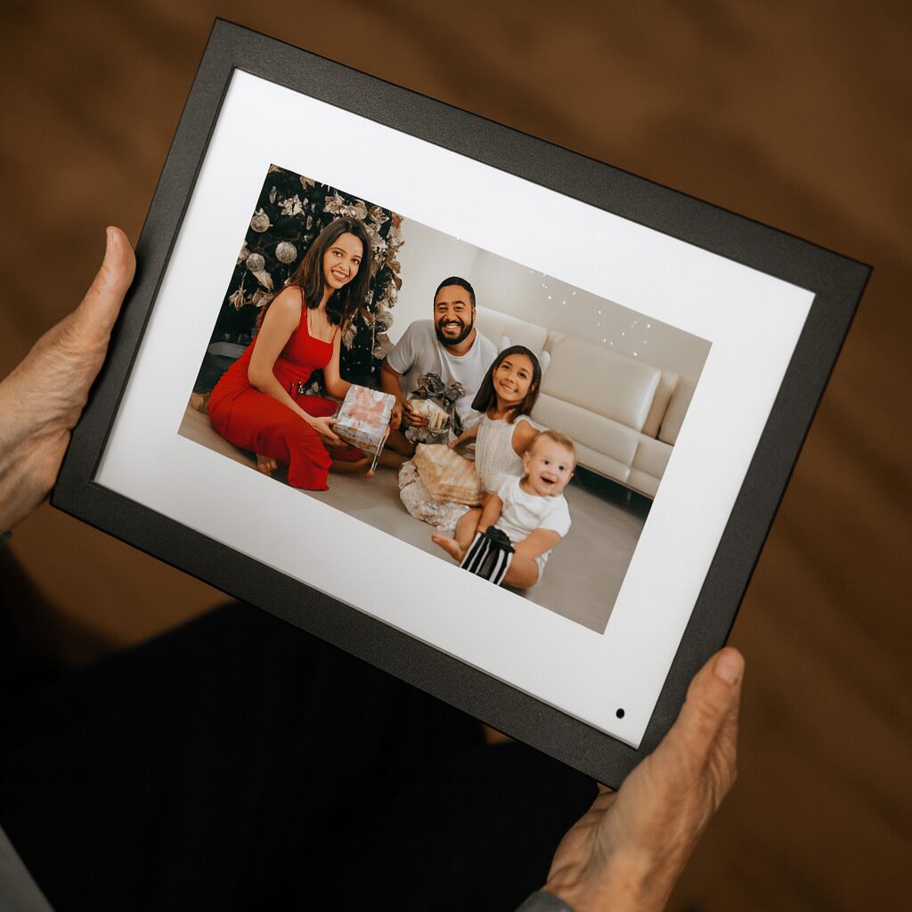 Frames are all compatible with our free Photoshare app that allows users and guests to send photos directly to any and multiple frames. Easily crop, edit, or add text to any photo or video before sending. Download the app for Android or Apple.