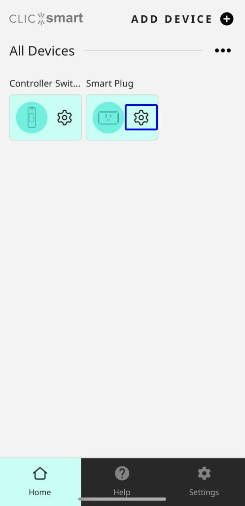 1. Launch the ClicSmart app and navigate to the home screen. Tap the gear icon adjacent to the WiFi Smart Plug device.