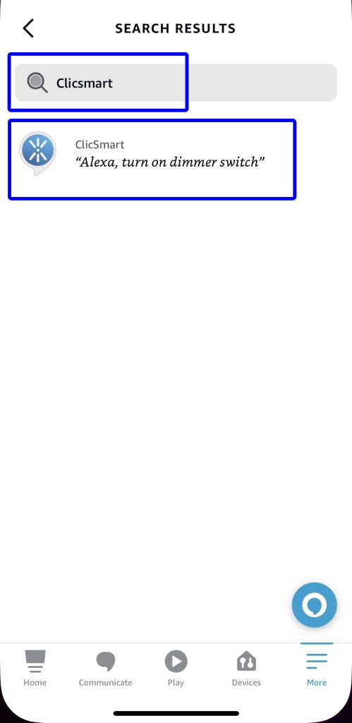 2. In the search bar, type “ClicSmart”. Select the “ClicSmart” Amazon Alexa skill.