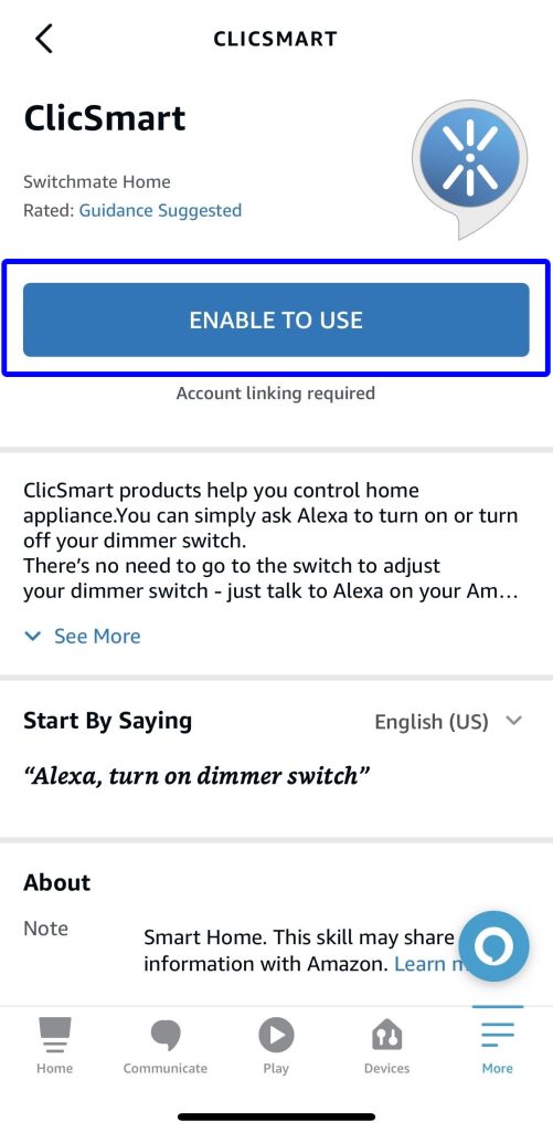 5. Follow the on-screen instructions to enable your ClicSmart devices in Alexa.